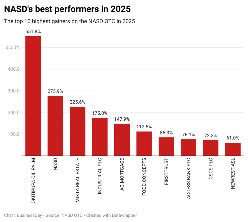 However, in this story, BusinessDay reviews some of the best-performing equities on the NASD OTC market, highlighting the top 10 exceptional performers that have delivered strong returns to investors.