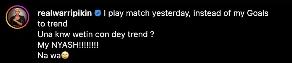 “I play match yesterday, instead of my Goals to trend, Una knw wetin con dey trend? My NYASH!!!!!!! Na wa o,” she wrote.