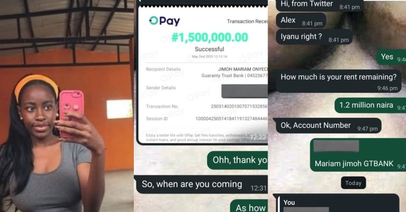 Subsequently, he requested for her account details and sent her ₦1.5 million, prompting the lady to express her gratitude.