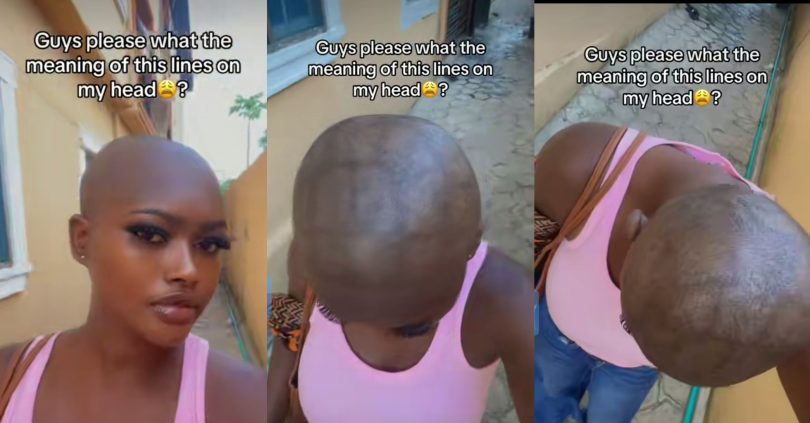 A Nigerian lady who shaved off her hair for the first time has triggered reactions online after discovering lines on her scalp.