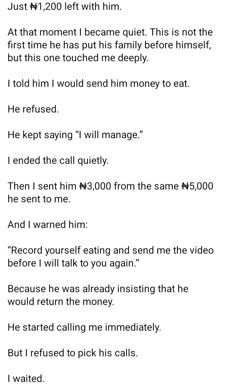 This same man only ate around 2pm as his breakfast, because he was trying to save money, yet he still sent ₦5,000 to his family.