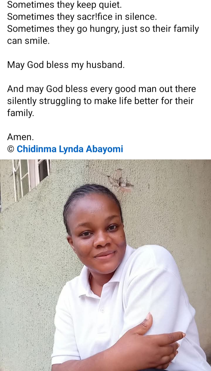 Nigerian lady, Chidinma Lynda Abayomi recently shared a touching story about her husband’s quiet sacrifices for their family.